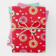 Doughnuts Valentine's Day Hearts Red Pink Teal Wrapping Paper Sheet