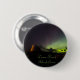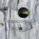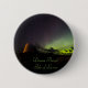 A small round badge with a photograph of the Doune Broch, Isle of Lewis and colorful Aurora/ Northern lights with green and purple and stars