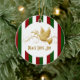 A festive Xmas tree decoration featuring an elegant gold bird carrying an olive branch in its mouth surrounded by floral swirls and stripes in red, green and white. CUSTOMIZE IT - Personalise the wording.