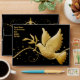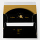 These classic, elegant Christmas invitation envelopes are ideal for greeting cards too. This particular envelope has a jet black background and has delicate ornate gold birds, snow and floral curls on it. FRONT: Gracing the front is a large gold dove of peace with an olive branch in its mouth. It is flying across the front and has beautiful gold vines and snow running horizontally across its chest. BACK: The top flap echoes the swirls of snow and florals and is intersected at midpoint by a bright gold star which represents the birth of Jesus of Nazareth. INSIDE: A pleasant surprise awaits! On opening the seal, the inner section is a black arch surrounded by tan antique gold on the top edge. Placed just above the exterior flap on the inside is a small gold replica of the elegant dove which pops against the black background. CUSTOMIZE IT: There are text templates placed on the top left corner of the cover, on the bottom section of the back and to the left and right of the dove on the inside. Feel free to move, re-size, re-position, replace or delete these fields. The colour of the black background may also be changed to any colour of your choosing and the size, style and colour of the font amended too. PLEASE NOTE: We do made to order merchandise and stationery and would be more than happy to assist with any requests you may have. COPYRIGHT: To Robin Wood - mensgifts. All rights reserved. SHOP WEB ADDRESS: http://www.zazzle.com/mensgifts*