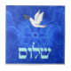 Features "shalom" (Hebrew "peace") and a dove carrying a bit of olive branch in its beak on a nice blue and white fractal background featuring a Star of David and the suggestion of bird wings.