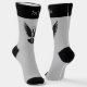 Flying dove with simple key icon. Custom background colour. Custom top stripe colour. Custom monogram. Custom text on each sock.