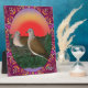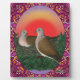 A pair of nesting ringneck doves is set off by a vibrant sky. The design gives an almost vintage look to the artwork.