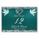 This romantic design features an elegant teal background with glitter borders, heart & doves with a place for the table number, couple's names and date of event. Available in several colours for your wedding theme. (Glitter is simulated in the artwork). Designed to coordinate with the "Two Shall Become One - Doves, Heart & Glitter" Wedding Collection. To change details, click «Personalise». To move the text or change the text size, font, or colour click «Click to customise further».