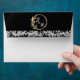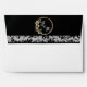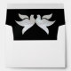 This design features pearl doves on a black background on the inside flap, borders on front with a leaf monogram & glitter on back flap. (Glitter is simulated in artwork - not real glitter). Personalise the return address on front and the doves on inside flap can easily be replaced or removed if prefer. Available in several colours for your wedding theme. Designed to coordinate with the "Two Shall Become One - Hearts, Doves & Glitter" Wedding Collection. To change details, click «Personalise». To move the text or change the text size, font, or colour click «Click to customise further»