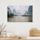 Misty karst landscape around Yangshuo - Guilin river cruise, China. Photo print poster.