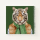 This design features a tiger winter ready wearing his down vest, green knit scarf and Christmas sweater.