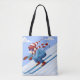 The downhill skier skiing down the slopes. This design looks really effective on this Tote Bag