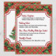 A beautiful Christmas table specials flyer (daily specials menu) featuring customisable menu specials on red plaid background with holly and berry accents. Great for your restaurant holiday table or holiday barroom food.