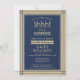 Can you keep a secret? Invite family and friends to an elegant and exciting surprise birthday celebration with custom navy blue and gold party invitations. All wording on this template is simple to personalise, including message that reads "Shhh! It's a SURPRISE." The design features a modern striped border, classic vintage art deco typography and stylish script calligraphy. Please note that gold is printed colour, not metallic foil. This card can be customised for any year or event type, and is suitable for either a man or a woman. Cheers and Happy Birthday!