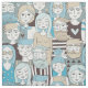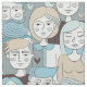This contemporary design features a hand drawn pattern of young men and women's faces in a crowd like pedestrians on a downtown street. The overall colour palette is in shades of soft sandy beige, blue and ivory. Search ID494 to see other products with this design.