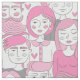 This contemporary design features a hand drawn pattern of young men and women's faces in a crowd like pedestrians on a downtown street. The overall colour palette is shades of pink and grey but the white background can be changed to suit your own taste. Search ID494 to see other products with this design.
