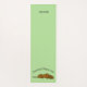 Fun green yoga mat done with cartoon graphics of a brown dog laying down. Black arched text, above the dog reads, Downward Facing Dog. The other end of the mat has black custom text, personalise to suit your needs.