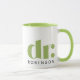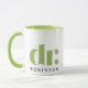 Celebrate professional achievements in style with this sleek and modern "dr." mug, featuring bold typography and a customizable name beneath. The sophisticated light green and white design, accented with a contrasting green interior and handle, makes it a perfect gift for doctors, PhDs, or anyone with a well-deserved title. Whether for a graduation, promotion, or just as a thoughtful token of recognition, this personalized mug is a chic and meaningful way to honor hard work and success. 💡 How to Customize: - Click "Personalize this template" to add the name. - Want more changes? Choose "Edit using Design Tools" to adjust font type, color, or layout.