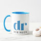 Celebrate professional achievements in style with this sleek and modern "dr" mug, featuring bold typography and a customizable name beneath. The sophisticated blue and white design, accented with a contrasting blue interior and handle, makes it a perfect gift for doctors, PhDs, or anyone with a well-deserved title. Whether for a graduation, promotion, or just as a thoughtful token of recognition, this personalized mug is a chic and meaningful way to honor hard work and success. 💡 How to Customize: - Click "Personalize this template" to add the name. - Want more changes? Choose "Edit using Design Tools" to adjust font type, color, or layout.