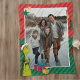 This blanket is perfectly balanced between Christmas cheer and holiday mischief! This fun, cozy custom photo blanket is framed with a bold red and green diagonal stripe pattern and features a large center space for your favorite family photo. Standing watch is the full-body grumpy Grinch in his Santa hat, pointing and looking suspicious! With cheerful presents and stockings decorating the frame, this blanket is the perfect whimsical gift for staying warm while embracing your inner curmudgeon!