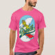 I give wanted to give this a 4 instead of a 5 because these Basic DARK T0shirts run unexpectedly SLIM or Narrow. Which is great if you do not have a potbelly, but I have a paunch. It isn't the shirt's fault that I've got a beer belly. The design and shirt itself is a quality cotton shirt. The color is more of a deep purple, but still a very pretty color. The Basic DARK T-shirts run a bit SLIMMER than the Basic Ts. The neck is a fraction narrower (or seems to be narrower) also. I'm a paunchy middle-aged woman and my neck is 12 inches (31cm) thick and the neckline fell about the same as in the photo of the man, and I had the desire to tug it a bit. So if you're a thick necked man or like loose shirts, be aware these are slimmer shirts. Once I get rid of my lockdown paunch it'll look great. The shirt washed well in cold water with no apparent bleeding. We don't have a dryer, so it hung dry. Did not shrink. Love the colors and the design. The design looks smaller on my shirt than it does on the model on-line. But still, it looks good on the shirt. The printing looks as it does on the model, just the size seems fractionally smaller. Washed garment in cold water, hung dry and design appeared unaffected.
