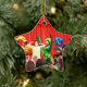 A quality product. Very nicely printed which wraps around the edge with a plain back. Not at all to heavy to fall off that tree branch. The printing seems crisp and robust enough to last for many a Christmas.