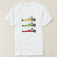 Three drag racing cars in hand drawn graphic design - dragster style vehicles with long body, large engine and fat wheels - plus traffic light car colours.