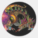 DRAGO / FANTASY GOLD DRAGON IN PURPLE AND BLACK CLASSIC ROUND STICKER