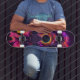 This design, The Dragon was illustrated by an artist from Portland Oregon. The dragon in deep purple and black with the bright pink, orange and yellow to contrast the dark colours and the attention to detail is amazing in this graphic. This design is a one of a kind and will have people asking, "who makes it and where can I get one".