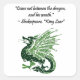 The immortal wordsmith, the master of literature William Shakespeare was like no other in his ability to capture the essence of our humanity and emotion in his wildly popular Renaissance plays. In one of his most memorable tragedies, the namesake character King Lear roars his rage against his lovely daughter Cordelia when she is unable to flatter his ego. This fully customisable design features Lear’s quote “Come not between the dragon and his wrath” above a stylised green cartoon drawing of a ferocious dragon.