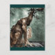 Vintage image of a mermaid on the rocks hugging a tall scaly dragon. Colourized in browns and turquoise. Artwork by Swedish artist John Bauer.