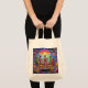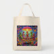 The printing came out very well, better than I had anticipated. The natural color fabric is sturdy with strong seams and comfortable handles. This tote fits easily over my shoulder. As it is filled, the bottom flattens out--very cool! I would buy this product again. This grocery tote holds a lot of groceries! The image quality was very good. The colors were a little darker than I had expected. The darkness may have been due to printing on a natural color fabric rather than on white. The cat design is attractively centered on the tote. The spirit of the design is very lively, just as it appears on the Zazzle website.