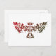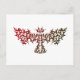 a decorative tribal tattoo design of an abstract dragon, bird or bat in red and green colours on a postcard