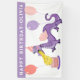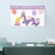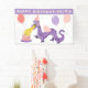 Creative dragon birthday party banner featuring cute, funny purple and pink dragon making a wish. To personalise edit text to add name.
