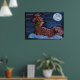 Pastel drawing by Gunilla Wachtel from Kanweienea Kreations. Mythical, colourful dragon on a cloud with moon in the background.