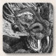 A dragon lurks in a cave deep underground. Coaster set with a black and white customisable design for you to personalise with your own text, pictures and ideas. An original ink drawing by Jess Perry.