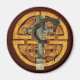 A round, traditional Celtic ornament as a background with a celtic stone cross and a green eastern dragon winding around it. A unique fantasy art design, and a great gift for dragonlovers and fantasy art fans.