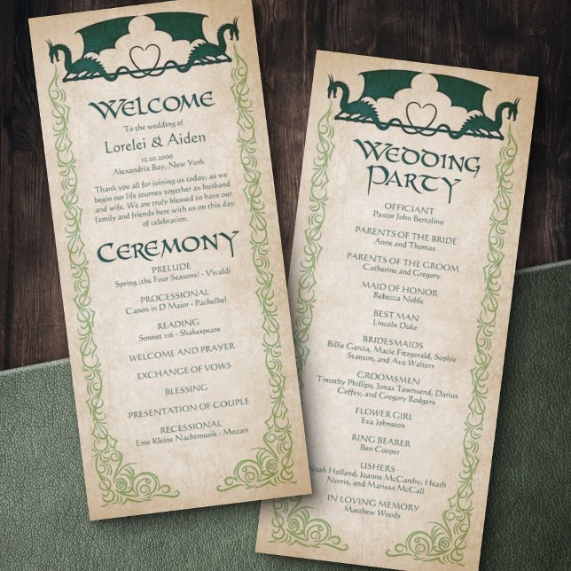 Any wedding would be better with a little dragon fire. The coordinating pieces of this dragonfire wedding invitation suite feature dragons and flames in ink with Celtic text on a parchment background. Perfect for your magical wedding, wizard wedding, Viking wedding, or epic fantasy wedding. Order your printed invitations and party supplies or download your digital invitations now for a day they'll never forget!