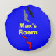 Fun cartoon character Dragon Spaceship on front. Backside has wording, (NAME'S) Room, PERSONALIZE with YOUR Name. Spaceship has brown eyes, red flame mouth, spiked tail and wings, with a black bottom with look of 3D stud lights and yellow beams of light underneath, back of ship has silver exhaust tubes leading the way up into the sky with blue stars. Original Artwork © 2014 TamiraZDesigns.