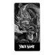A dragon lurks in a cave deep underground. Label with a black and white customisable design for you to personalise with your own text, pictures and ideas. An original ink drawing by Jess Perry.