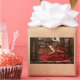 Red dragon sitting in their den reading a book. In behind there is podcasting equipment, computer and their treasured.