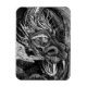 A dragon lurks in a cave deep underground. Flexible magnet with a black and white customisable design for you to personalise with your own text, pictures and ideas. An original ink drawing by Jess Perry.