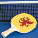 This dragon rampant design in red was inspired by various heraldic red dragons.