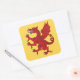 This dragon rampant design in red was inspired by various heraldic red dragons.