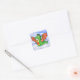Sticker shown in a small square shape with a cute green dragon print.