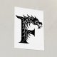 Dragon Styled Letter F, Dragon Alphabet, Monogram Foil Prints