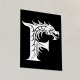 Dragon Styled Letter F, Dragon Alphabet, Monogram Foil Prints