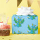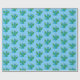 Gift wrapping paper shown in a bright blue colour with a cute dragon print.