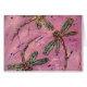 Gorgeous multi-coloured dragonflies on a pink fizzy background