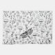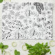 Dragonfly and various flowers and leaves. Doodle vector pattern in black and white.