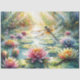 Bring serenity and elegance to your creative projects with this exquisite watercolor tissue paper design. Featuring a radiant dragonfly gliding over a tranquil pond filled with blooming lotus flowers and lush lily pads, this nature-inspired scene glows with soft sunlight and vibrant botanical detail. Shades of pink, peach, lavender, green, and golden yellow blend beautifully, capturing the magical stillness of a summer morning by the water.