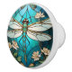Dragonfly Art Nouveau Deco Aqua Blue Stained Glass Ceramic Knob