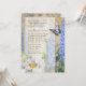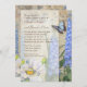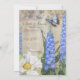 Matching Couple's Bridal Shower Invite that is perfect for the nature lover who is planning an outdoor, country, rustic garden style wedding shower theme, has a western barn venue location or simply loves flowers! DESIGN: The background and border artwork for this elegant, formal yet somewhat rustic wedding invitation invite is hand painted by Audrey Jeanne Roberts. The background is an aged, worn, distressed crackle finish style parchment. Beautiful spires of deep blue delphinium flower spires reach for the sky in various hues of blue from sky to periwinkle. A white Matilija poppy flower (often called "fried egg flowers" or "paper flower poppies") was painted in watercolors, live from Audrey Jeanne's own gardens. A Blue Morpho butterfly hovers over a Damselfly Dragonfly that is resting on the poppy. On the reverse side is the same image without the semi-transparent velum look and border. A complete, matching wedding invitation collection set is available for all your wedding, bridal shower or other special occasion and party needs. COLOR SELECTION: This design features natural tans, browns and beige tones with cream, white, light blue and sky blue.