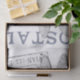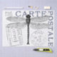 Vintage collage with black and white dragonfly illustration, carte postale French postcard title and French postmarks. Great for decoupage.